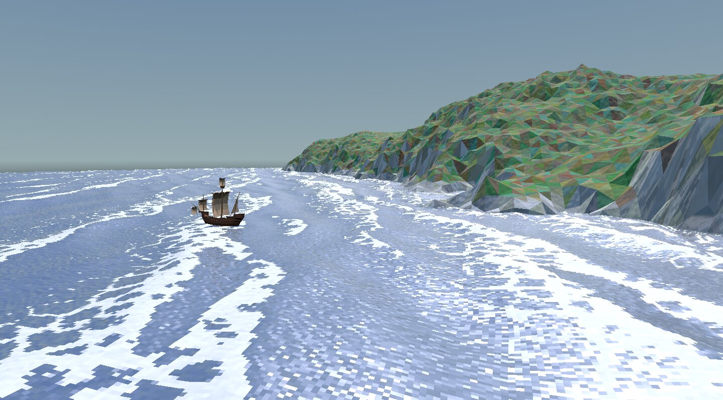 I previously blogged about how I’m modelling and rendering water waves in the game, but that was in the previous incarnation on a sphere. I’ve finally ported that over to the current version, and made some considerable improvements along the way. People told me it looks good, and I tend to agree. Let’s dive in!